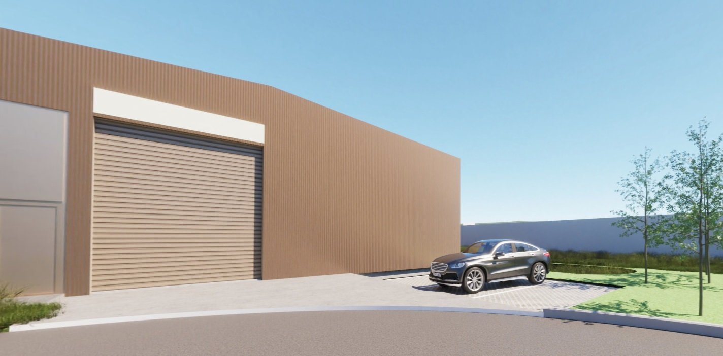 Nieuwbouw KMO-unit waarbij de gevel opgetrokken is uit sandwichpanelen.
